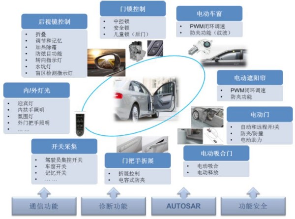 随着近年来车联网的快速发展,越来越多的车辆配备了远程控制功能。由于车窗法规的约束,远程升窗必须具备防夹保护功能,这就要求每个车门都要配备控制车窗防夹的电子模块。于此同时为迎合消费者不断提升的舒适性需求,车门上的电子电气设备规模也在不断增加。除了传统的电动车窗控制、后视镜控制、中控锁控制外,越来越多的主机厂在下一代车型上增配了电动吸合门、电动折展门把手、自动门、变色玻璃等功能。在这样的背景下,新的门模块产品方案有着巨大的市场需求。